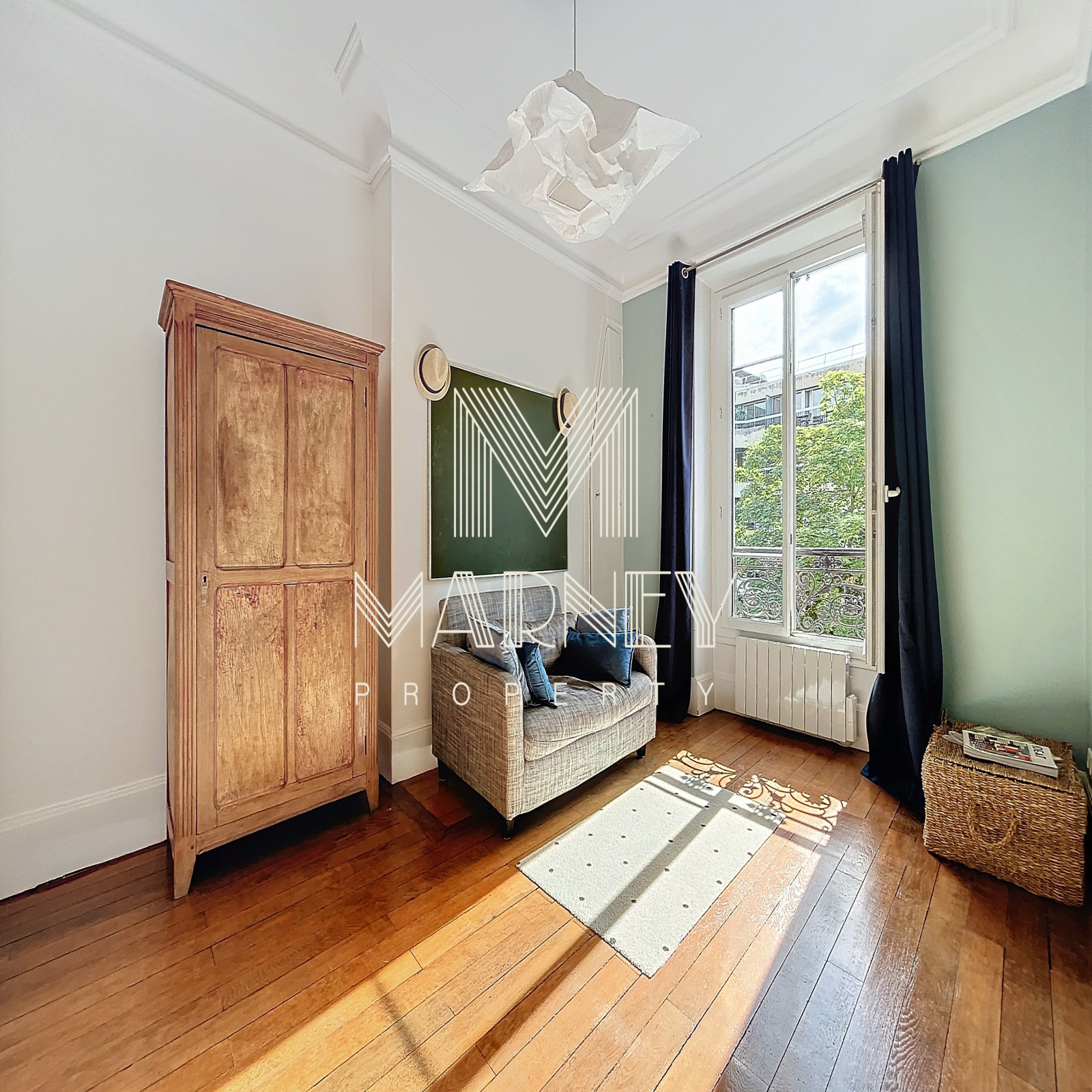 L'agence MARNEY PROPERTY agence immobilière à Paris 9, spécialiste de Paris et ses environs vous propose à Neuilly sur Seine dans le quartier Mairie / Sainte-Foy, cet appartement 3 pièces de 64,5m2 (62,90m2 loi carrez) en étage élevé (3ème sans asc.) dans un bel immeuble ancien. TRAVERSANT Ouest, Lumineux, au Calme absolu, Vue Dégagée / Verdure. Charme de l'Ancien : Parquet - Moulures - Cheminée - Dressing. Il se compose d'un séjour, 2 chambres, une cuisine séparée, une salle de bains, un dressing et un wc séparé. Peut facilement être configuré en double séjour avec une seule chambre. Commerces, Ecoles, Bois de Boulogne et Transport à proximité (Métro Ligne 1). Aucun travaux à prévoir. Une Grande Cave de 8,5m2 vient compléter ce bien.