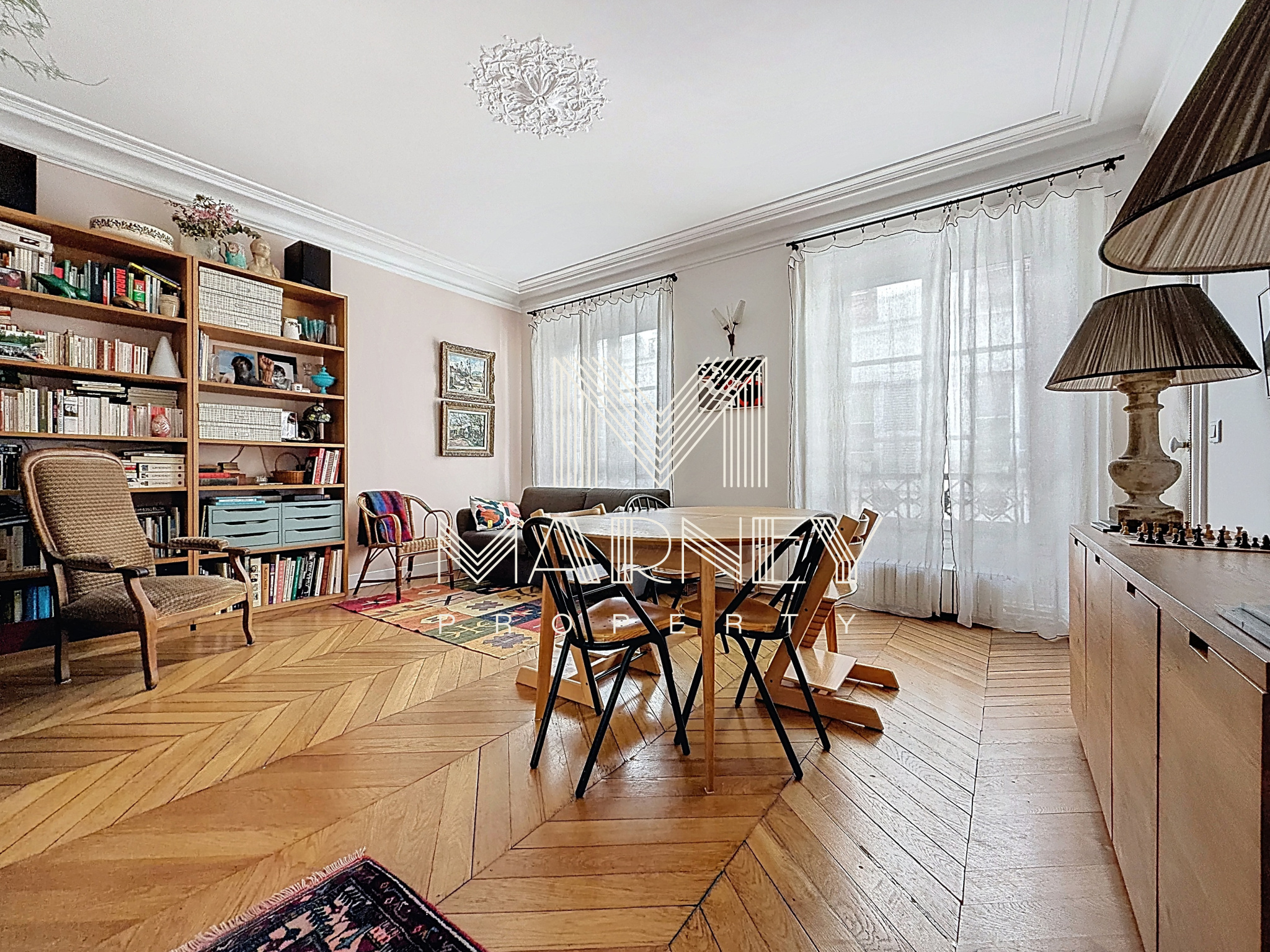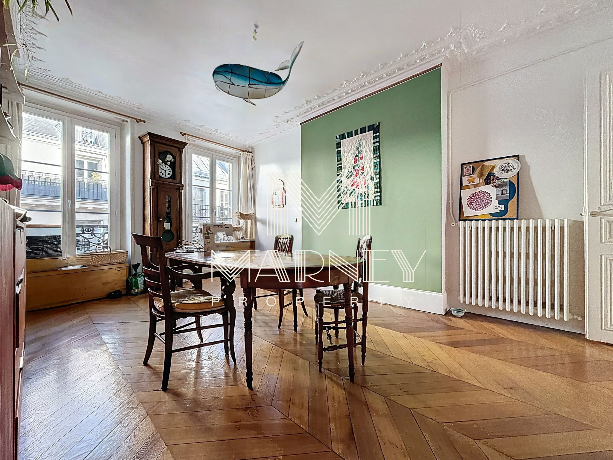 Une Nouveauté de notre agence immobilière MARNEY PROPERTY à Paris. Nous vous présentons ce bel appartement de 87.5 m² (85.89m2 loi carrez), entièrement RENOVE et décoré. Il est situé au cœur de Paris 9ème à 30m des FOLIES BERGERE. Installé au 3ème étage avec ascenseur d’un immeuble ancien, au CALME Absolu sur cour. Hauteur sous plafond, moulures et parquet apportent élégance et caractère à ce bien.