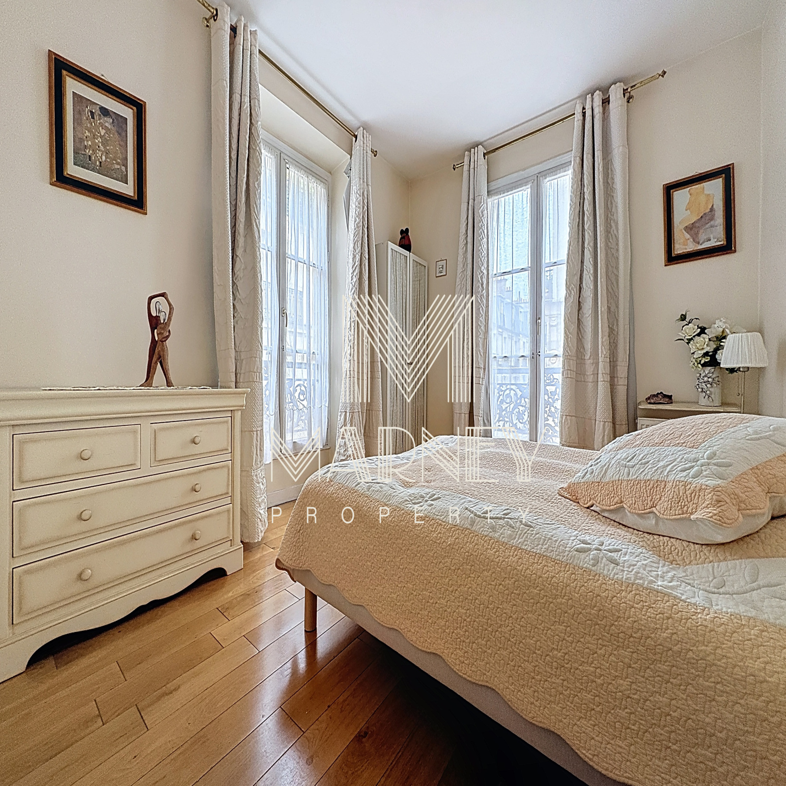 MARNEY PROPERTY spécialiste de la transaction immobilière à Paris 9ème vous propose au 3ème étage Avec Ascenseur, cet Appartement familial d'ANGLE de 151.66m2 (150.10m2 loi carrez), Secteur TRES Recherché de la Cité de Trévise . Charme de l'ancien, Parquet, Moulures, HAUTEUR SOUS PLAFOND de 3 Mètres. Il se compose d'une entrée, un Grand Séjour EXPOSE SUD, une cuisine Dinatoire, 4 chambres (actuellement la 4ème chambre est agencée en salle à manger), une salle de bains avec WC et baignoire balnéo, deux salles d'eau dont une avec WC et l'autre avec sauna, ainsi qu'un 3ème WC séparé. De Nombreux rangements / Dressing. Excellent DPE : D.