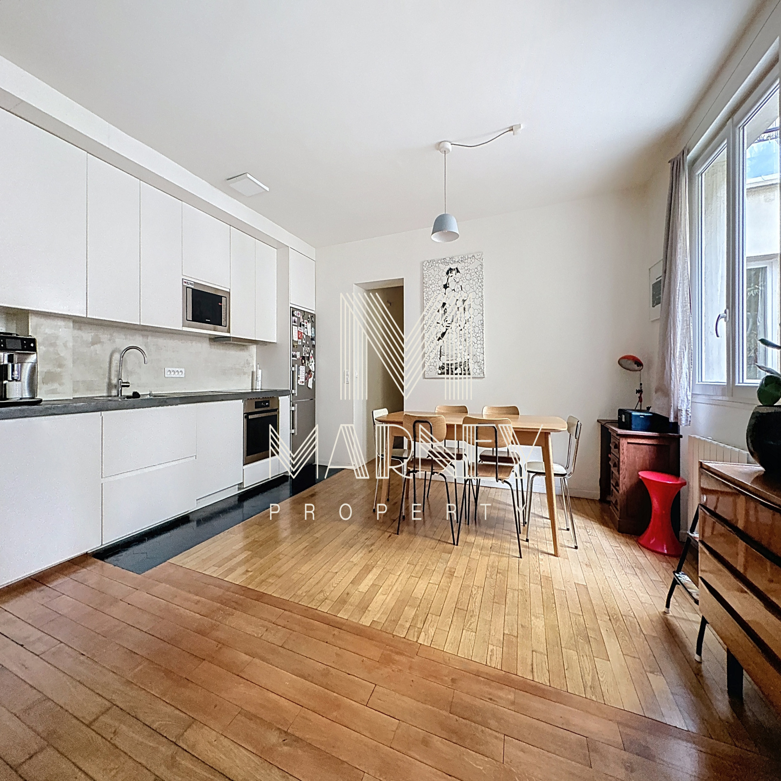 Une Nouveauté de notre agence immobilière MARNEY PROPERTY à Paris. Nous vous proposons dans un Immeuble ancien au CANAL ST MARTIN, au 1er étage avec Ascenseur, cet appartement 4 pièces, de 66.13m2 (65.90 m2 loi carrez), au CALME Absolu sur cour, entièrement Rénové par architecte. Il se compose d'une entrée, un double séjour-salle à manger, une cuisine américaine aménagée, 2 chambres en enfilade, un coin nuit pouvant accueillir un 3ème couchage ou un bureau, une salle de bains et WC indépendant. Une cave saine de 9.5m2 vient compléter ce bien. A proximité des commerces, transports (Lignes 2-4-5-7), théâtres, restaurants, lieux de vie... EMPLACEMENT RECHERCHE Secteur CANAL ST MARTIN / GRANGE AUX BELLES.