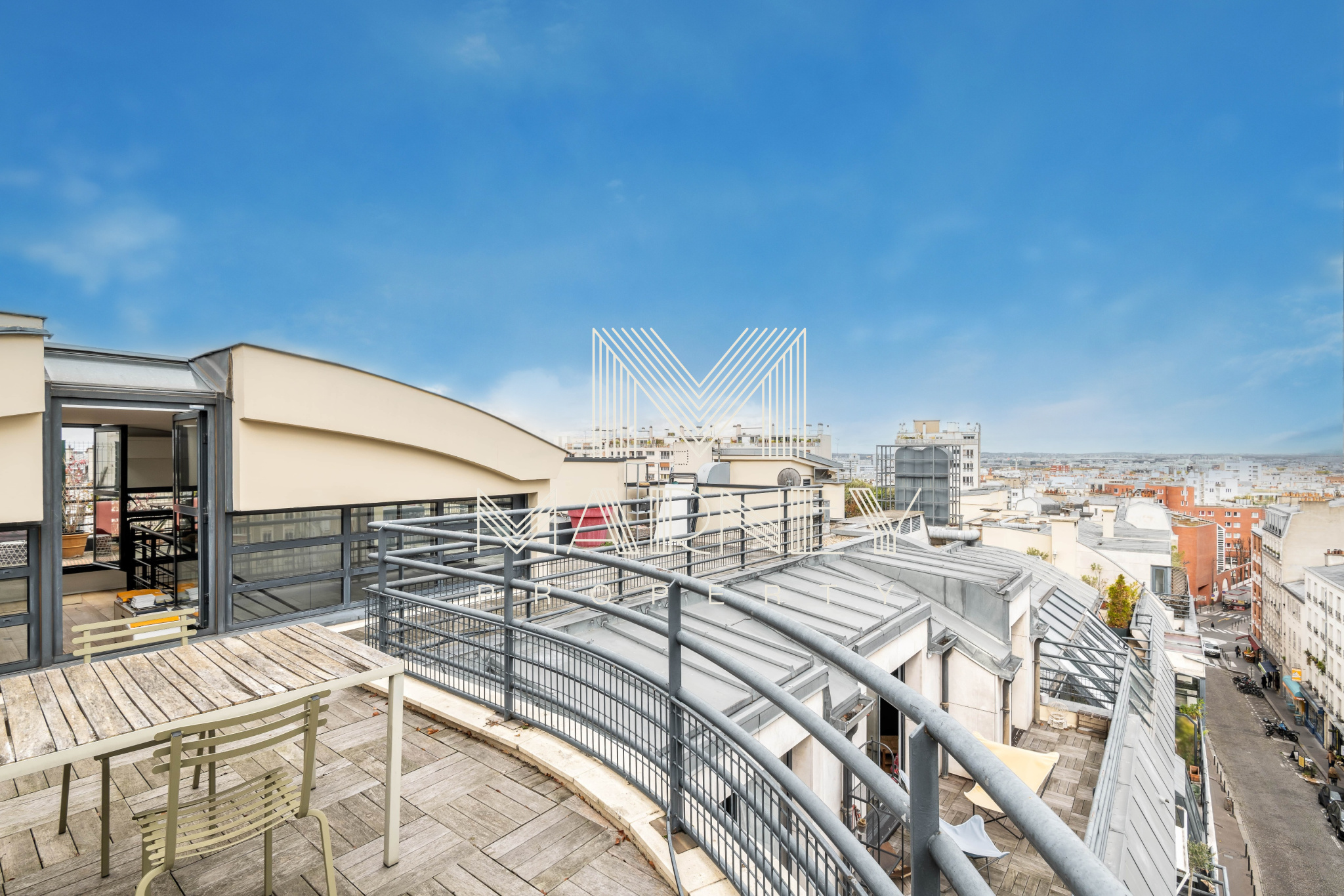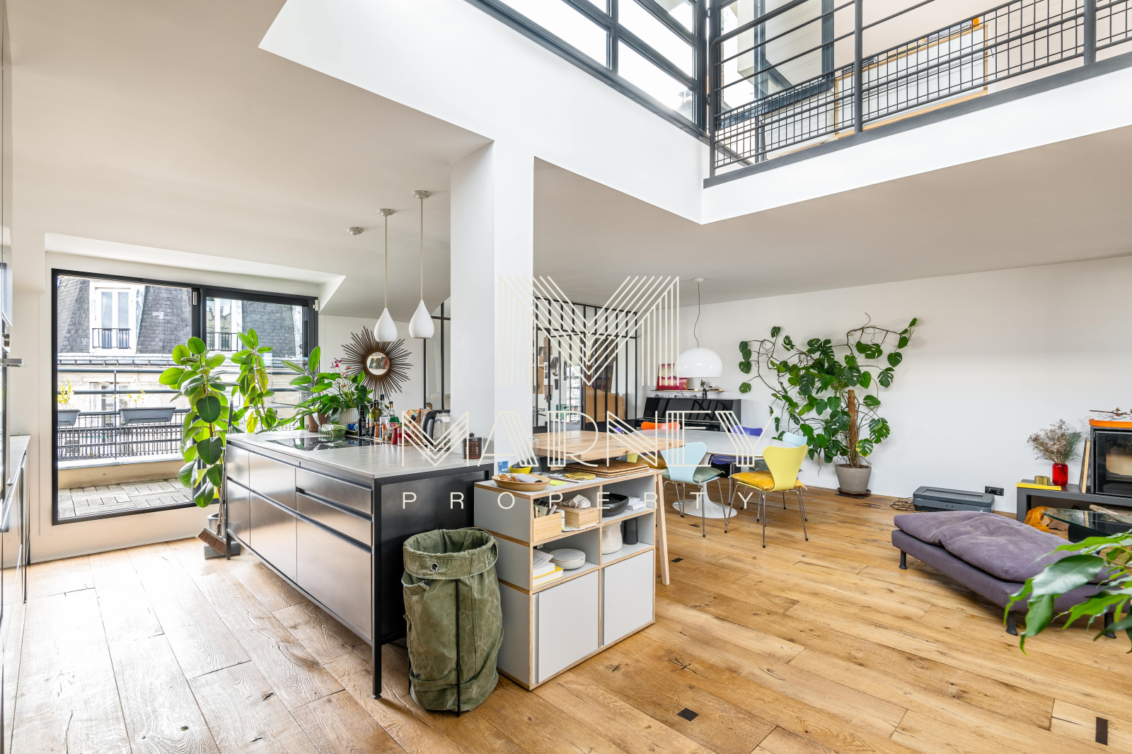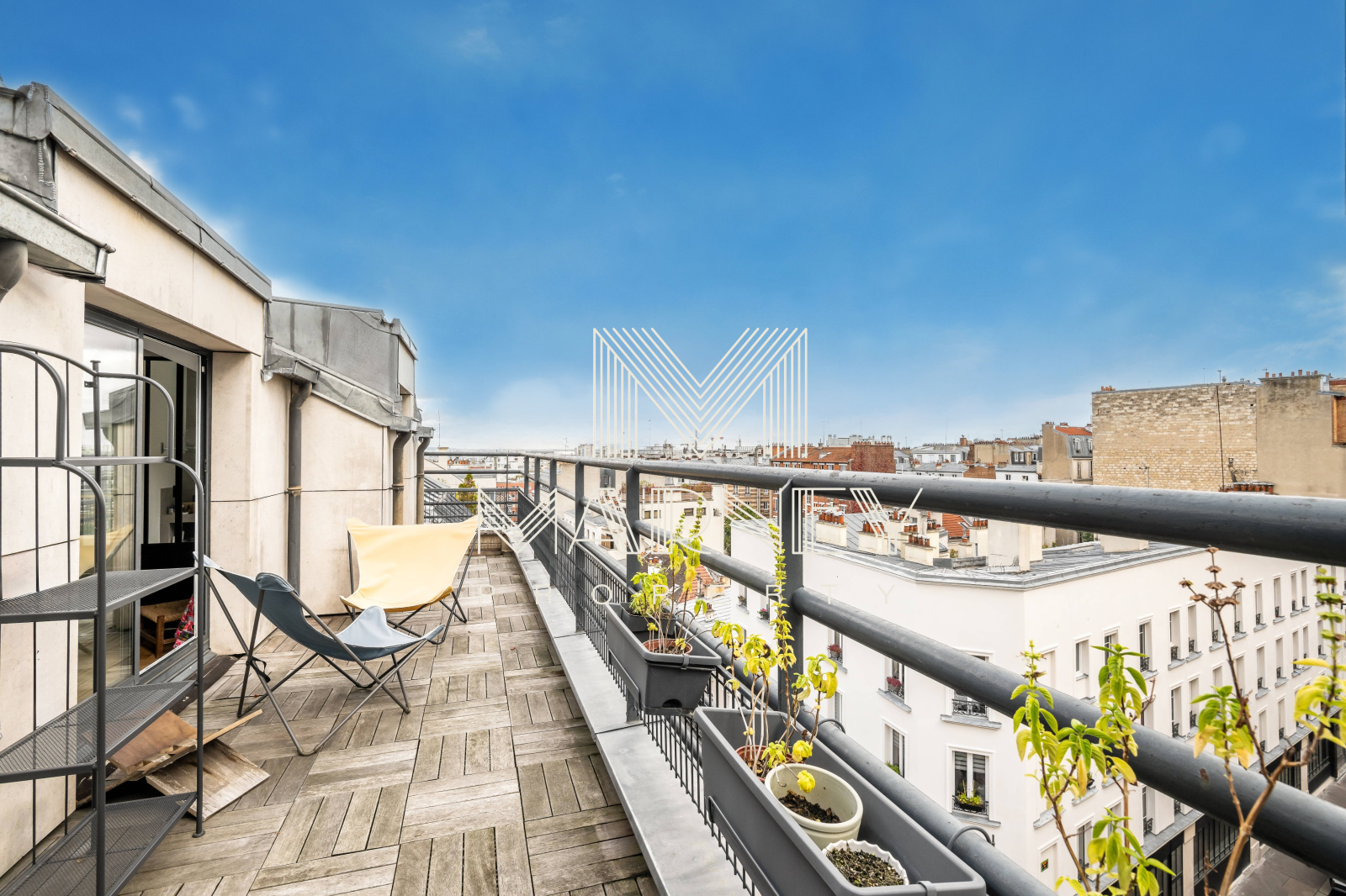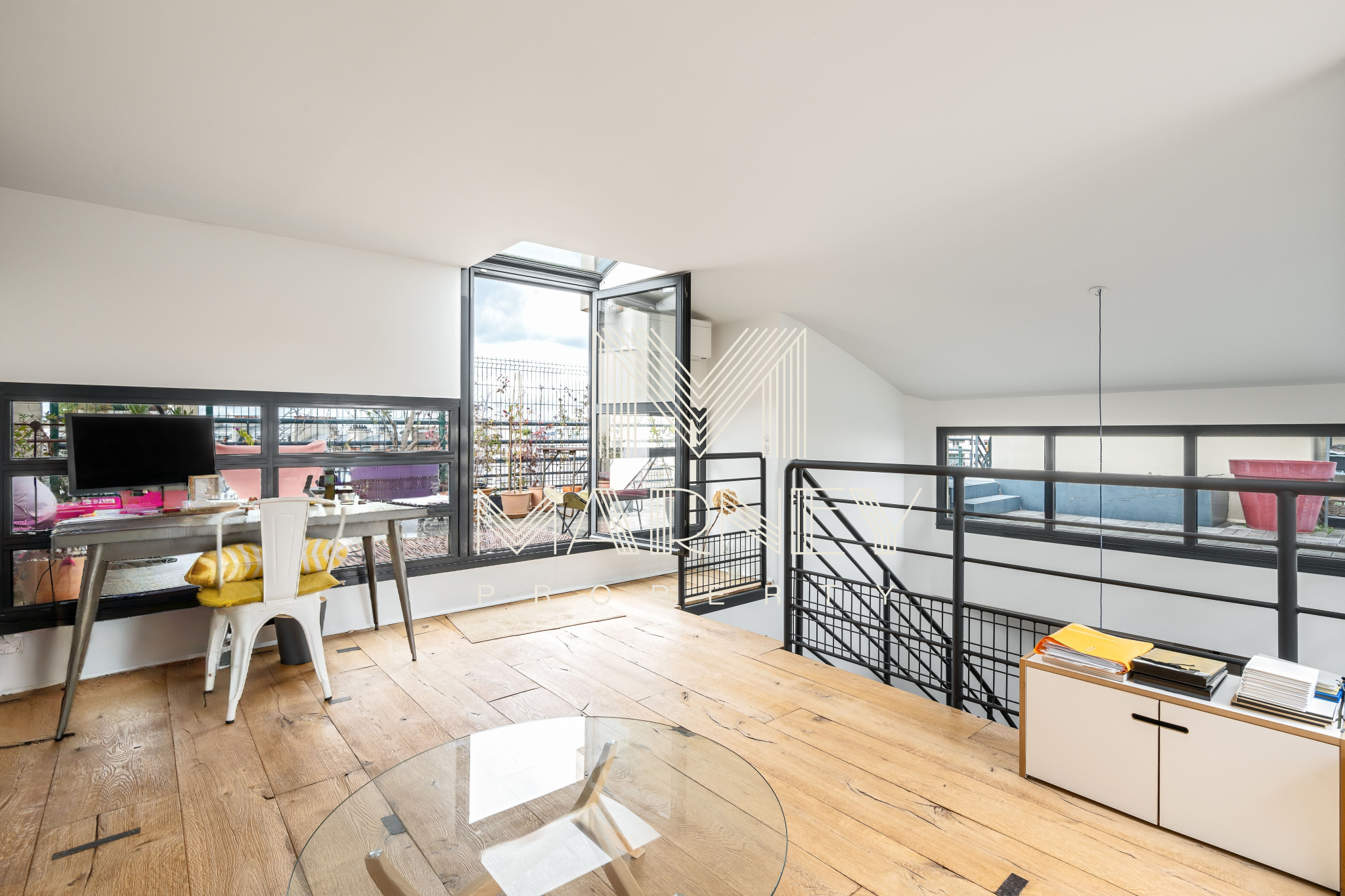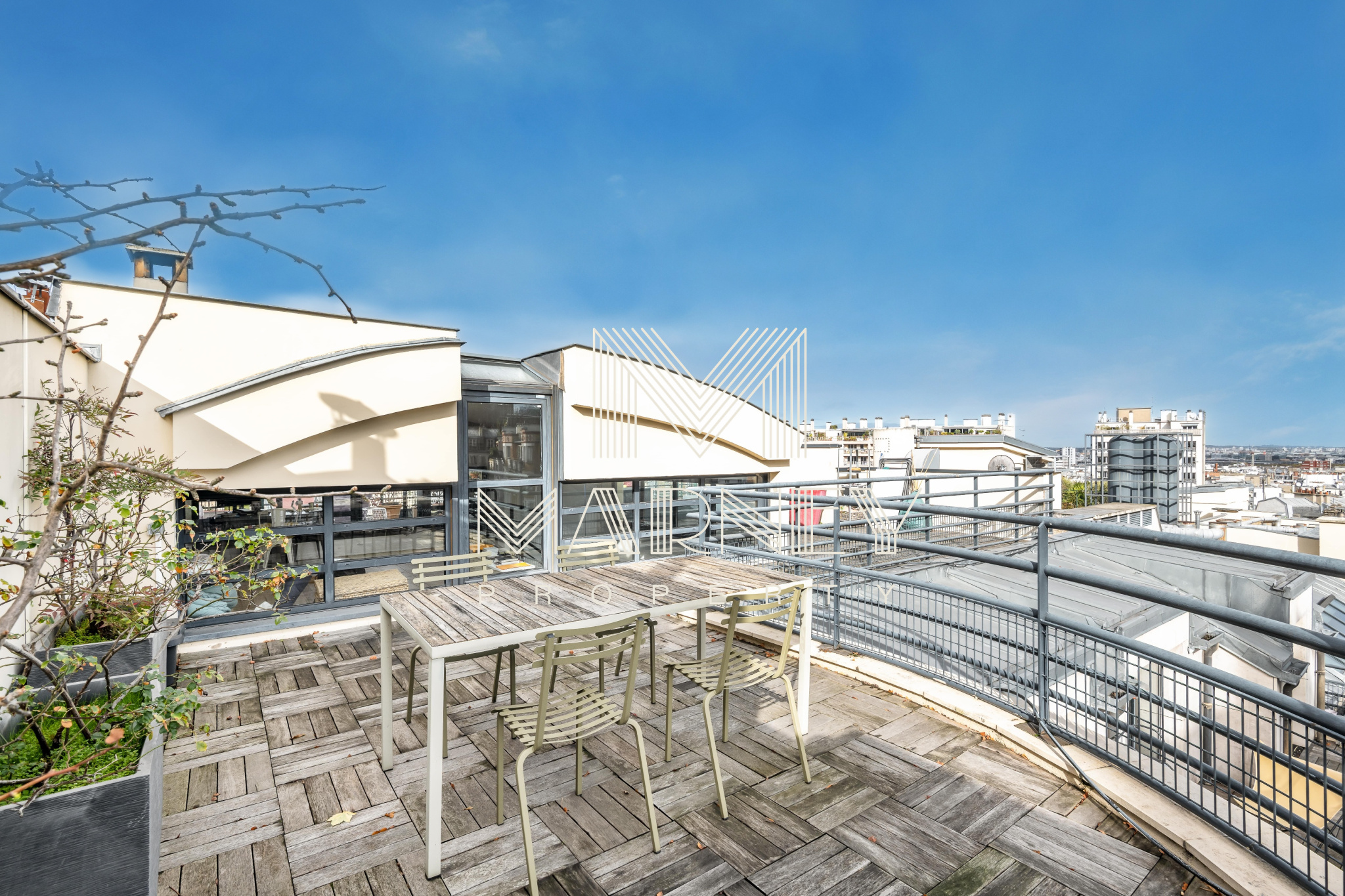 MARNEY PROPERTY, votre agence immobilière spécialiste de la transaction, vous propose au DERNIER Etage d’une résidence de standing des années 1990, avec Ascenseur, dans le quartier Lamarck-Caulaincourt, cet appartement en Duplex de 168 m² Loi Carrez et 158m2 de TERRASSES ET ROOFTOP. Le séjour Cathédrale, Haut de 5 mètres, apporte une vraie sensation d’espace et de lumière, et la cuisine ouverte s’intègre pleinement à la pièce de vie, avec un Accès Direct à la Terrasse. Chacune des 3 Chambres dispose de sa propre salle d’eau et d’un Accès Extérieur, ce qui offre un confort rare à Paris. Un atelier / bureau peut facilement être transformé en 4ème chambre. Sur la mezzanine, un espace bureau / bibliothèque permet d’accéder au Rooftop parfaitement adaptés à de nombreux aménagement.