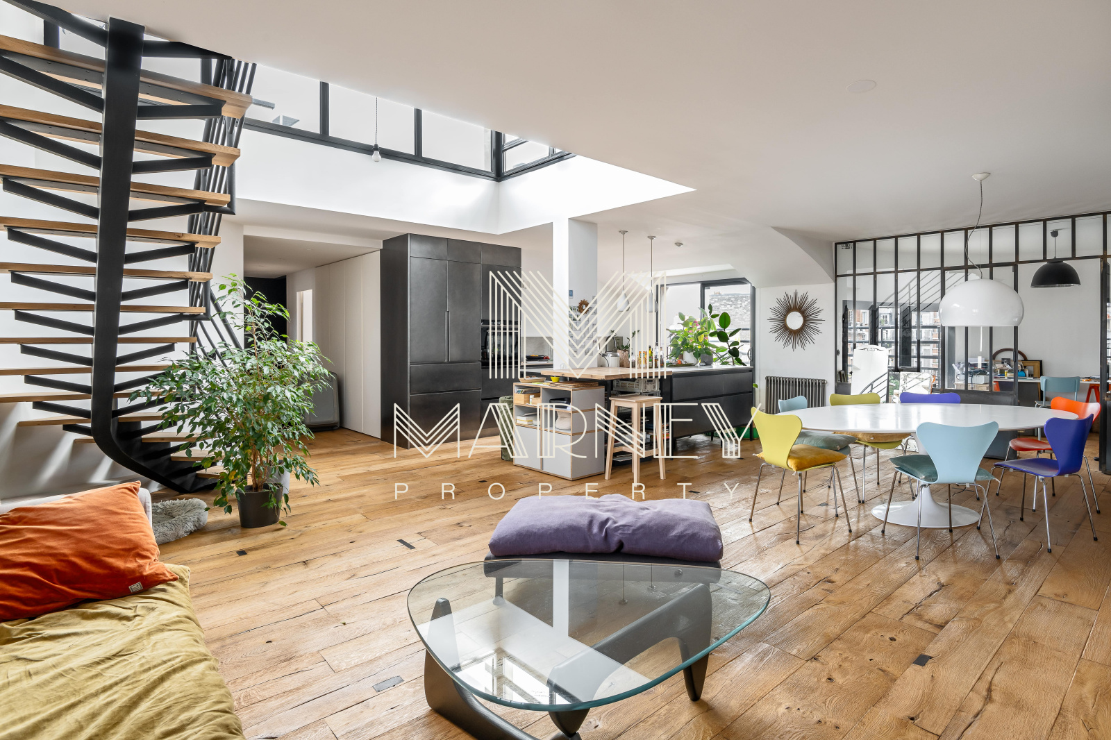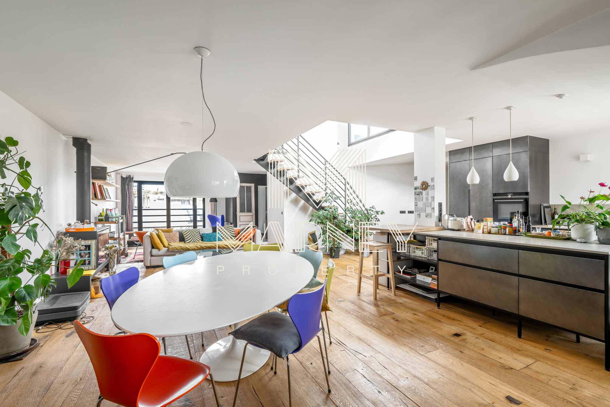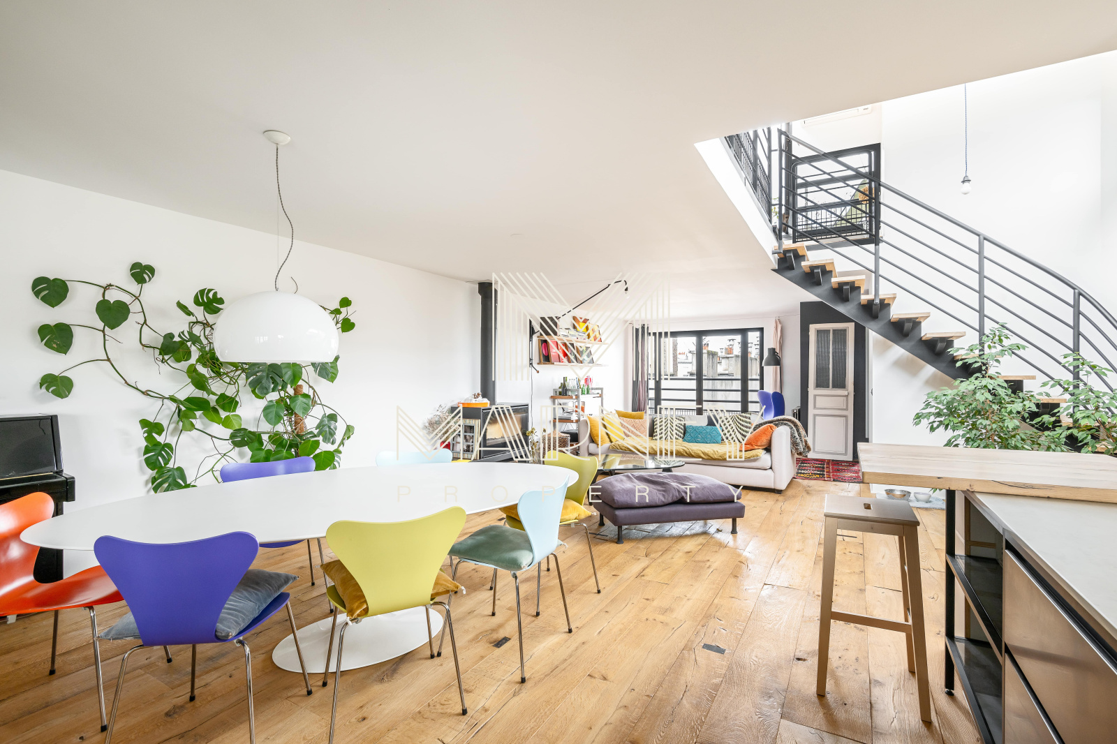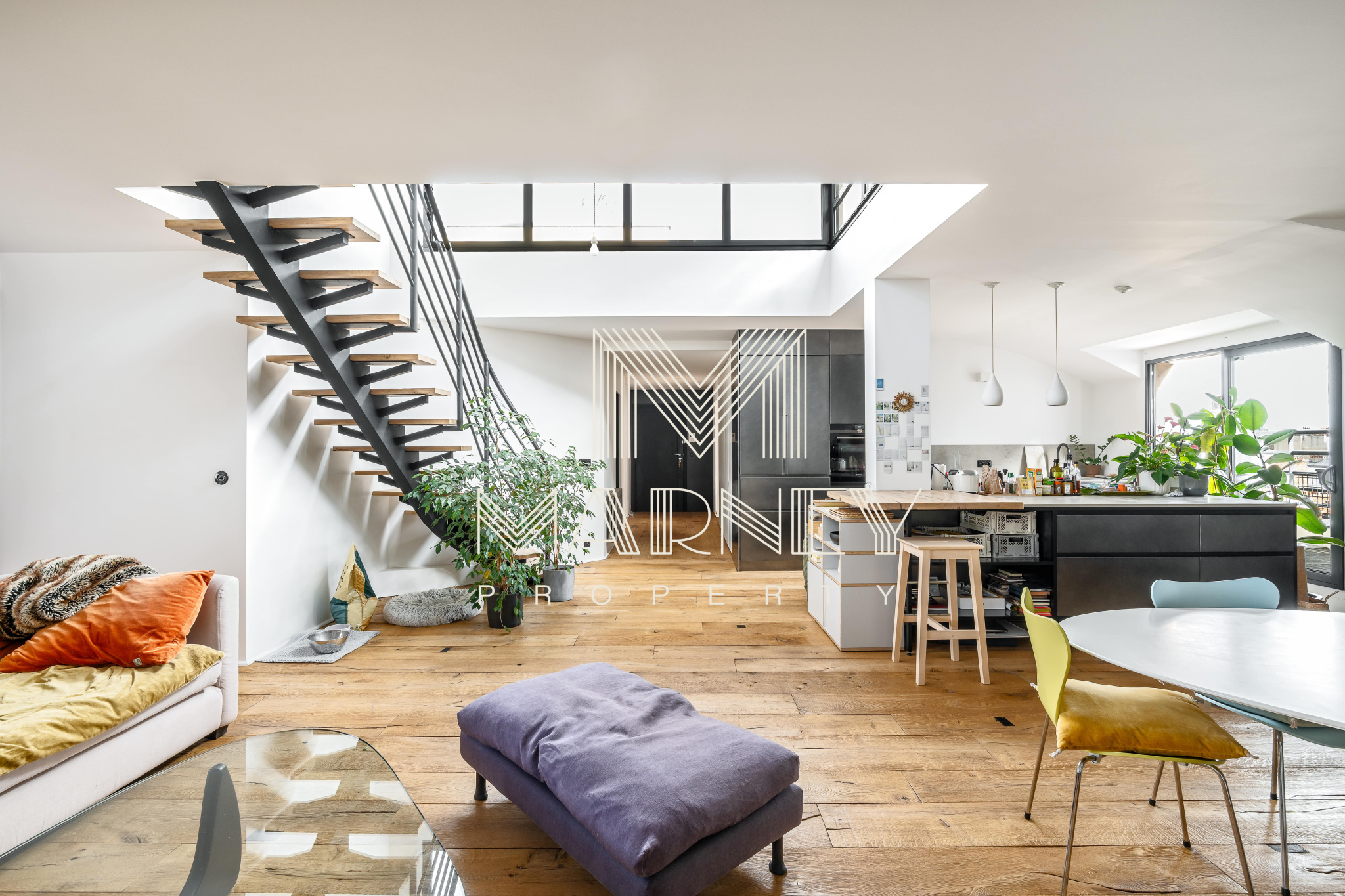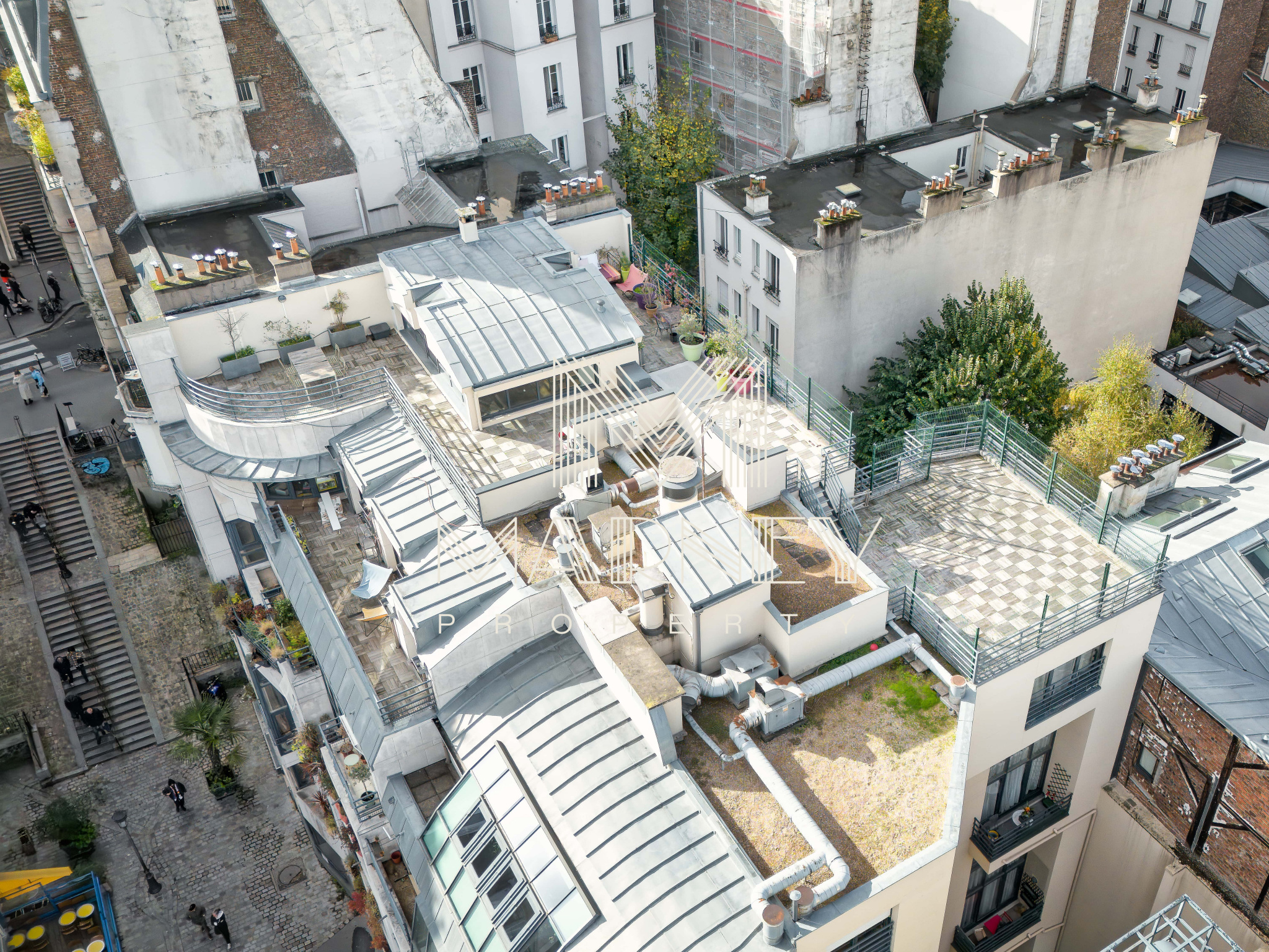 MARNEY PROPERTY, votre agence immobilière spécialiste de la transaction, vous propose au DERNIER Etage d’une résidence de standing des années 1990, avec Ascenseur, dans le quartier Lamarck-Caulaincourt, cet appartement en Duplex de 168 m² Loi Carrez et 158m2 de TERRASSES ET ROOFTOP. Le séjour Cathédrale, Haut de 5 mètres, apporte une vraie sensation d’espace et de lumière, et la cuisine ouverte s’intègre pleinement à la pièce de vie, avec un Accès Direct à la Terrasse. Chacune des 3 Chambres dispose de sa propre salle d’eau et d’un Accès Extérieur, ce qui offre un confort rare à Paris. Un atelier / bureau peut facilement être transformé en 4ème chambre. Sur la mezzanine, un espace bureau / bibliothèque permet d’accéder au Rooftop parfaitement adaptés à de nombreux aménagement.