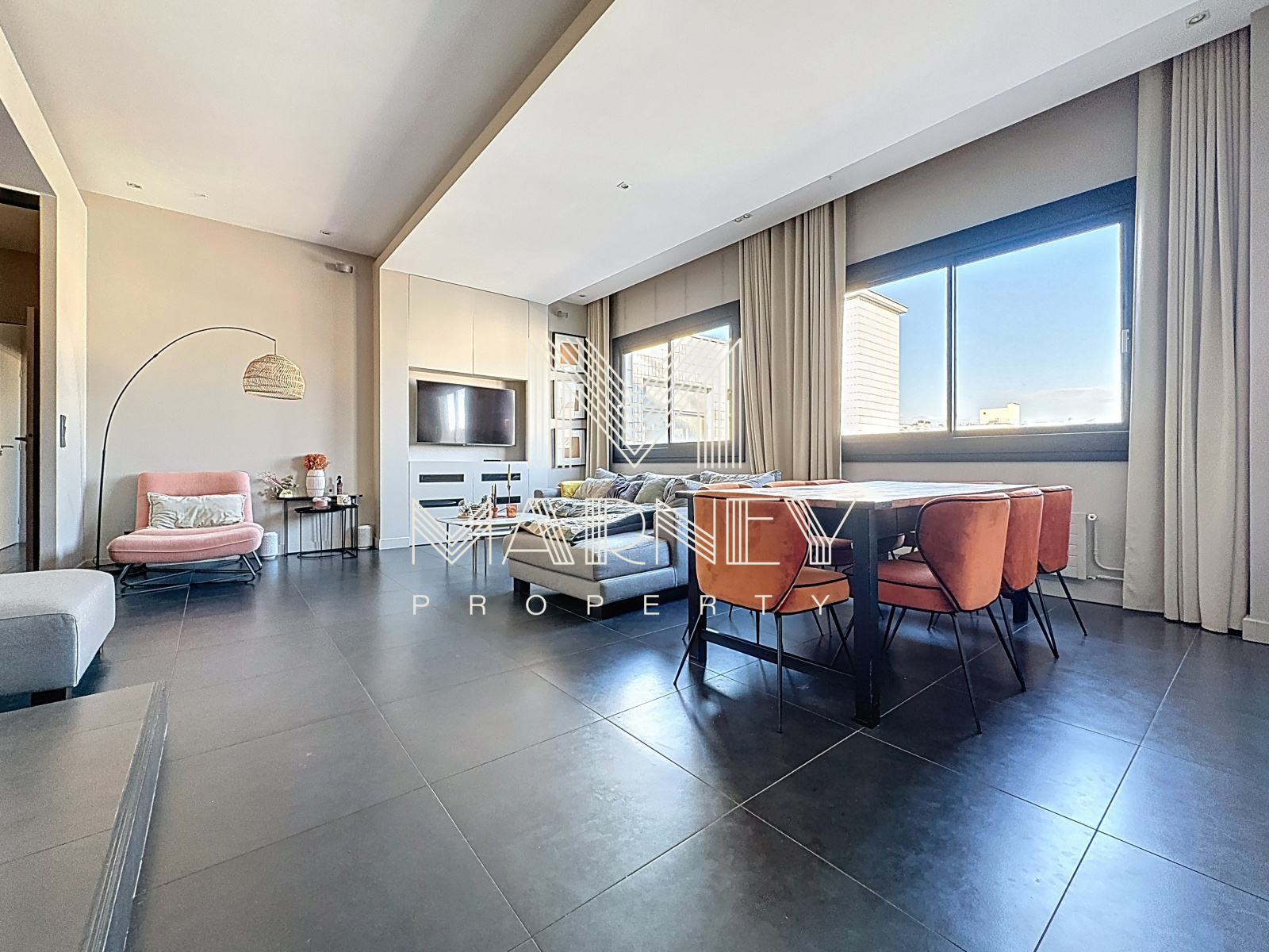 Notre agence immobilière MARNEY PROPERTY spécialiste en transaction immobilière vous propose à la vente à Levallois-Perret, Secteur Louise Michel - Limitrophe Neuilly, ce 4 pièces de 110.11m2 loi carrez (122.84m2 au sol), situé au DERNIER ETAGE avec ASCENSEUR, Lumineux, Vue Dégagée et au Calme. BELLE HAUTEUR SOUS PLAFOND de 3 mètres. Il se compose d'une entrée avec placards, un Double séjour avec cuisine US dinatoire Aménagée de 50m2, une chambre parentale avec dressing, une salle de douche et WC séparé, une seconde chambre Aménagée en 2 chambres d'enfants avec placards et mezzanine, une salle de bains avec baignoire d'angle et douche, un 2ème WC séparé et une buanderie. Vendu avec Emplacement de Parking sous-sol. Gardienne dans l'immeuble. Proche des commerces et transports.